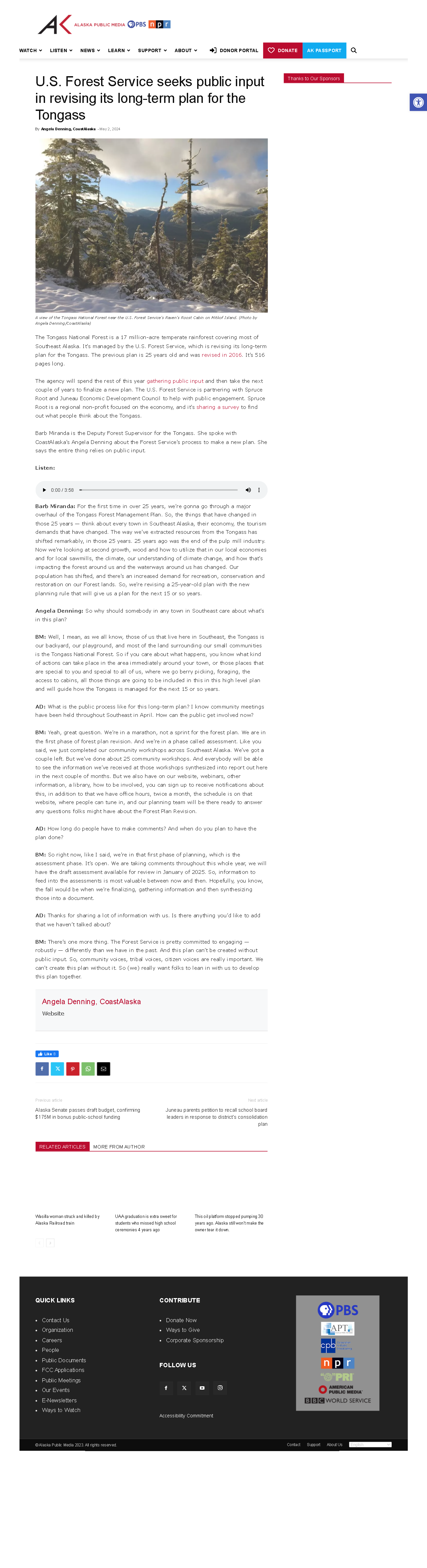The U.S. Forest Service is revising the 25-year-old management plan for the Tongass National Forest and is actively seeking public input to guide its future use and conservation.