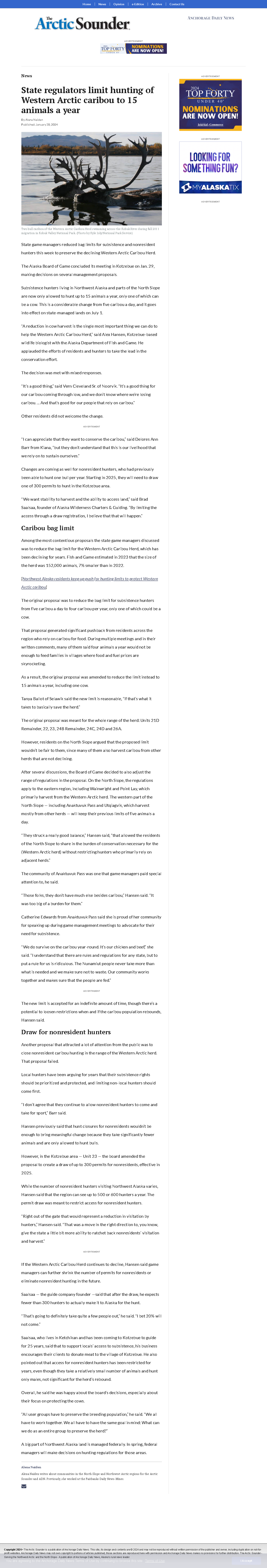 State regulators limit hunting of Western Arctic caribou to 15 animals a year