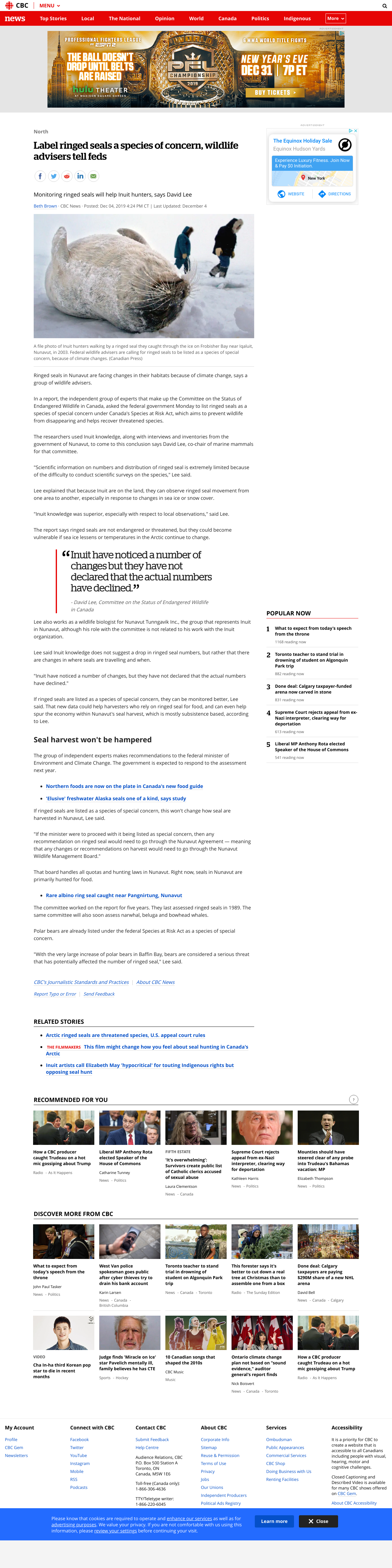 Ringed seals in Nunavut are facing changes in their habitats because of climate change, a group of wildlife advisers say.
