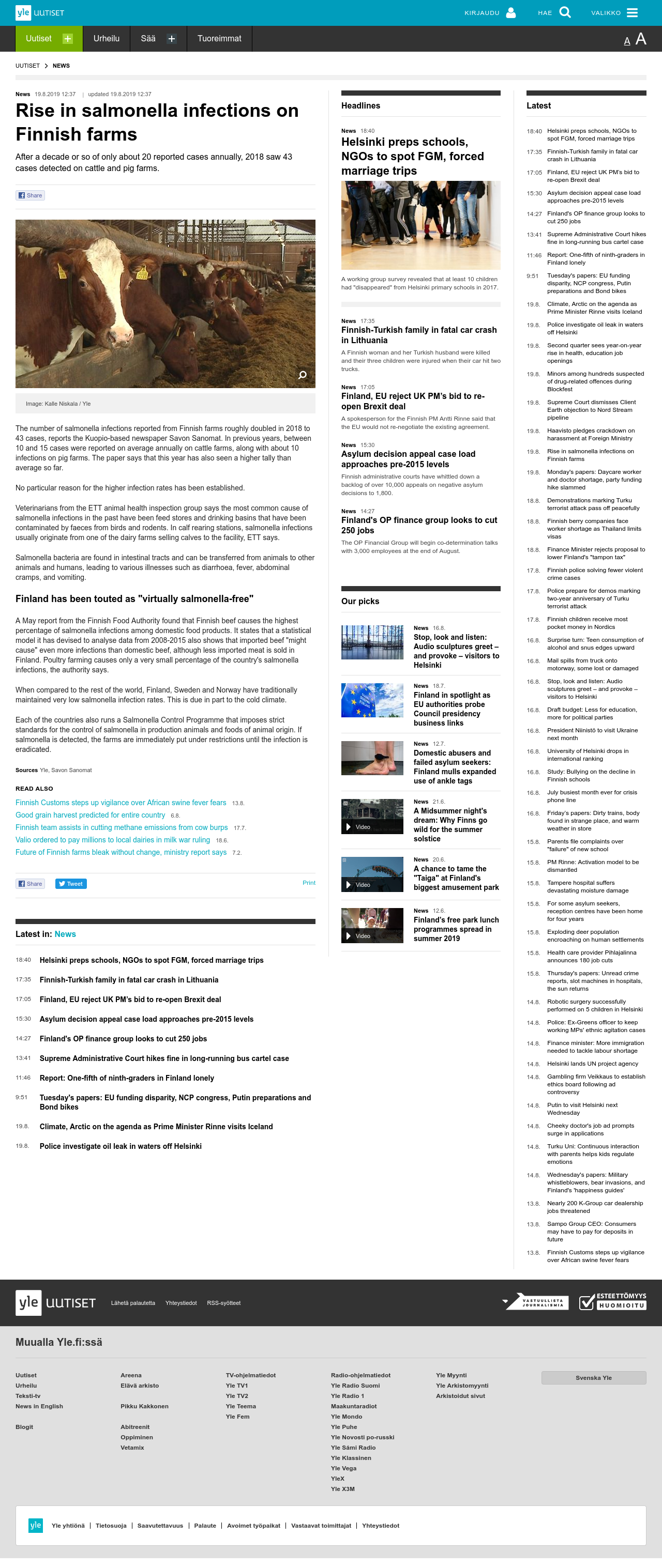 After a decade or so of only about 20 reported cases annually, 2018 saw 43 cases detected on cattle and pig farms.