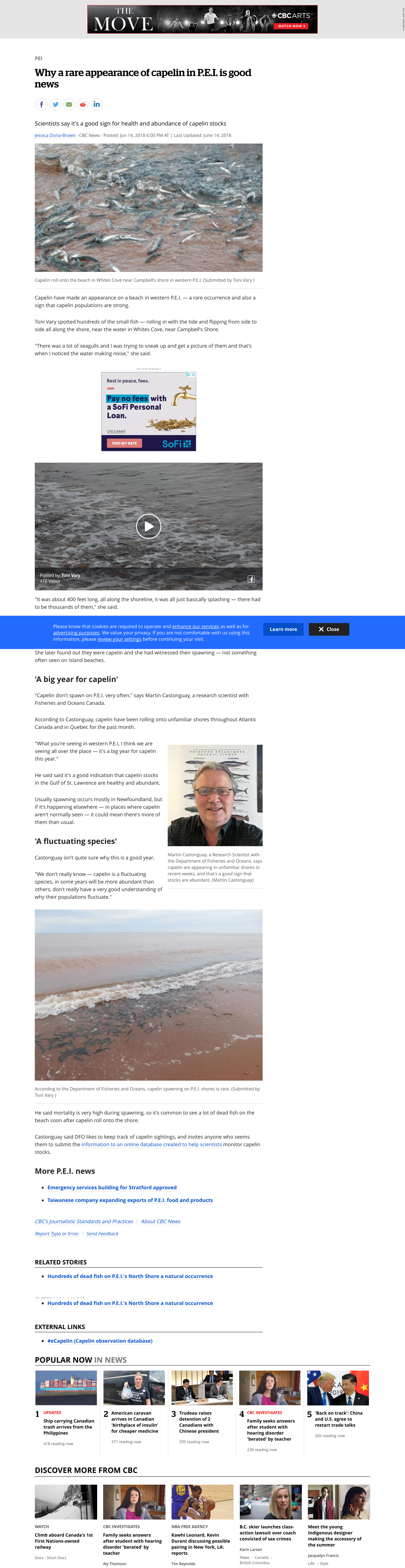 Capelin have made an appearance on a beach in western P.E.I. — a rare occurrence and also a sign that capelin populations are strong.