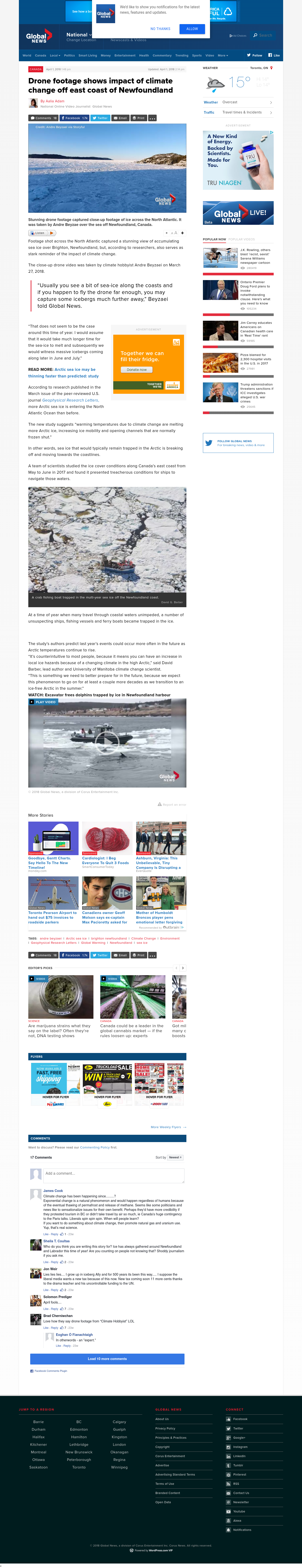 Footage shot across the North Atlantic captured a stunning view of accumulating sea ice over Brighton, Newfoundland, but, according to researchers, also serves as stark reminder of the impact of climate change.