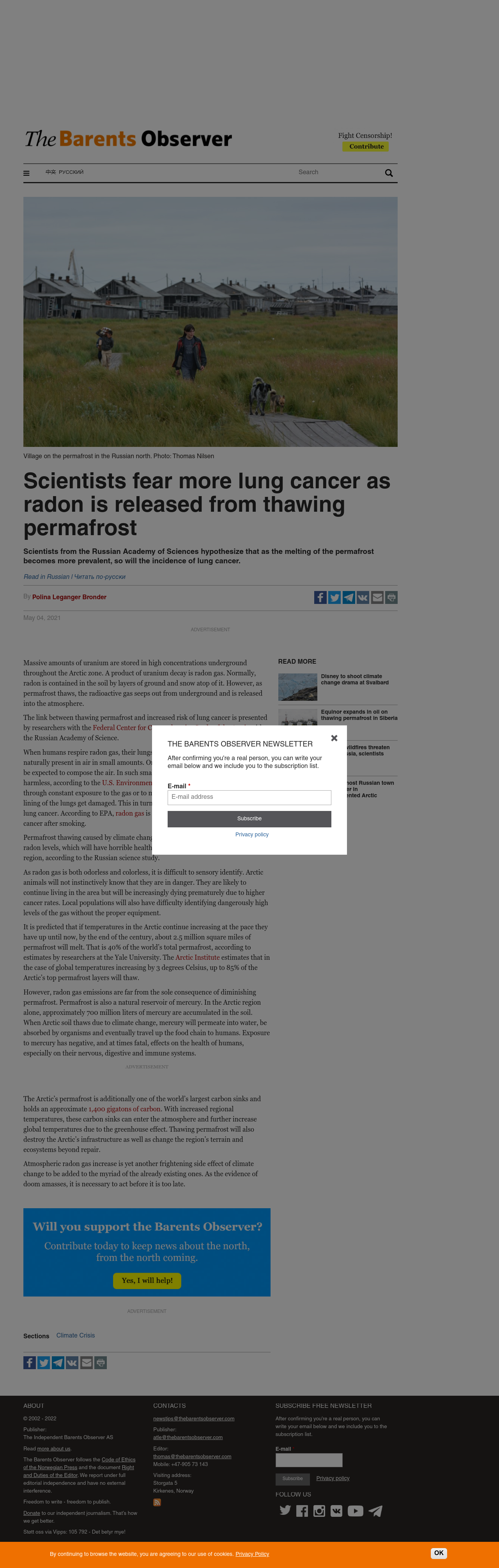 Scientists fear more lung cancer as radon is released from thawing permafrost