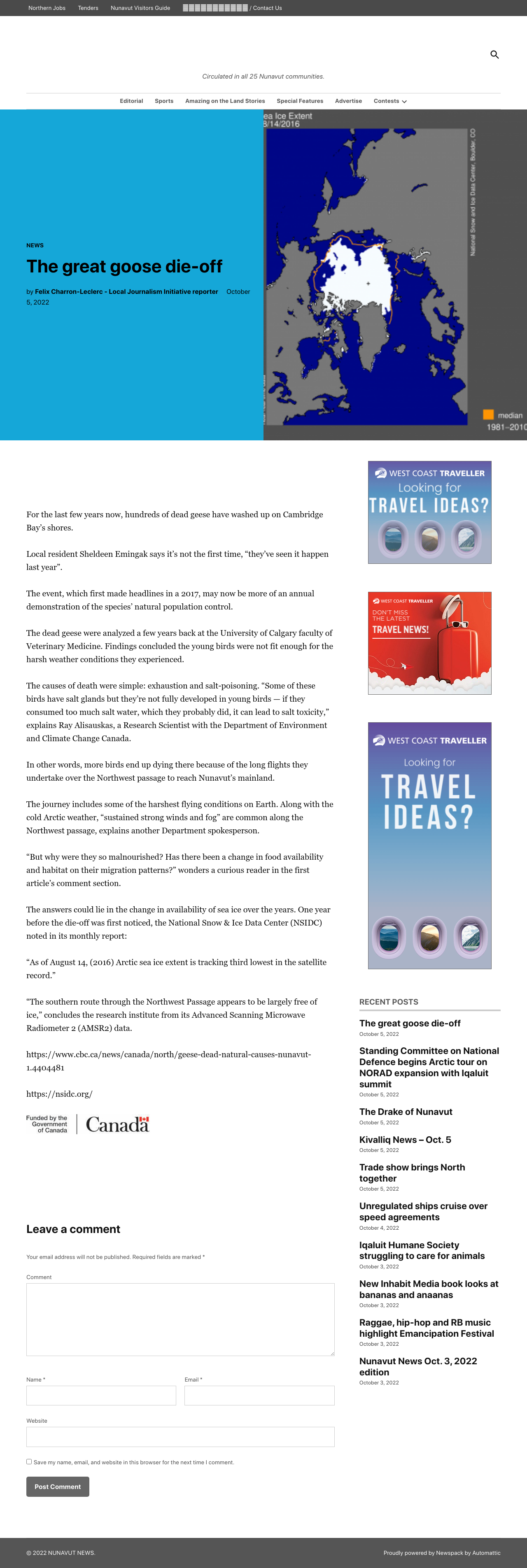 Scientists determine geese died due to exhaustion and salt-poisoning. More birds end up dying because of the long flights they undertake, in extreme conditions.