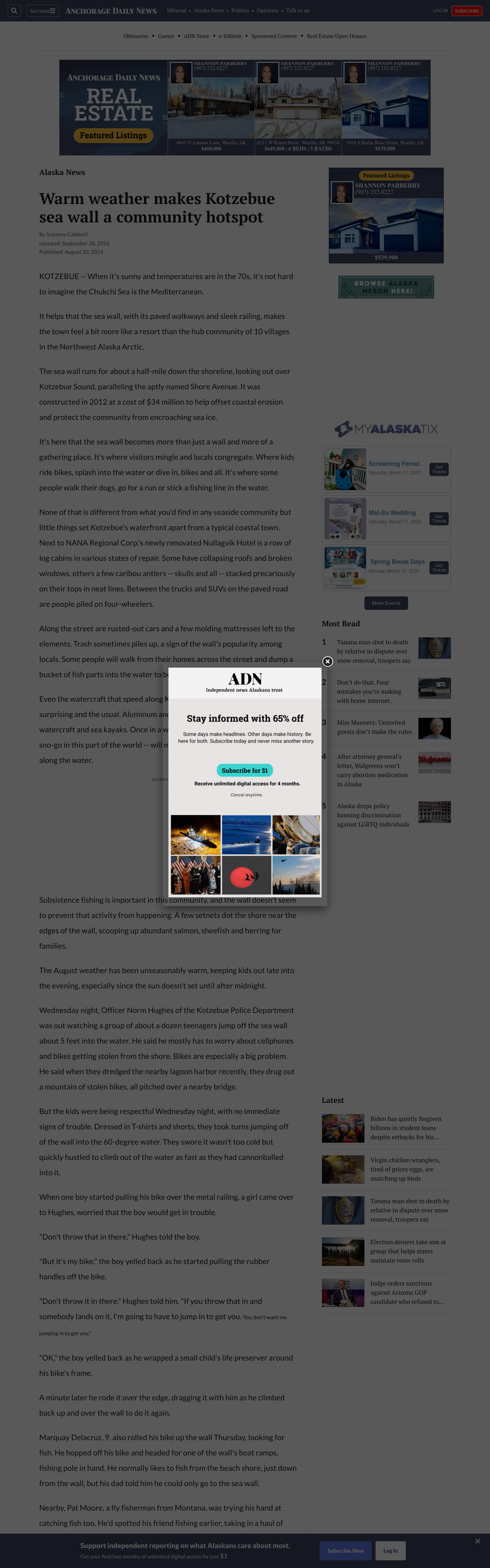 The half mile-long sea wall was constructed in 2012 at a cost of $34 million to help offset coastal erosion and protect the community from encroaching sea ice.