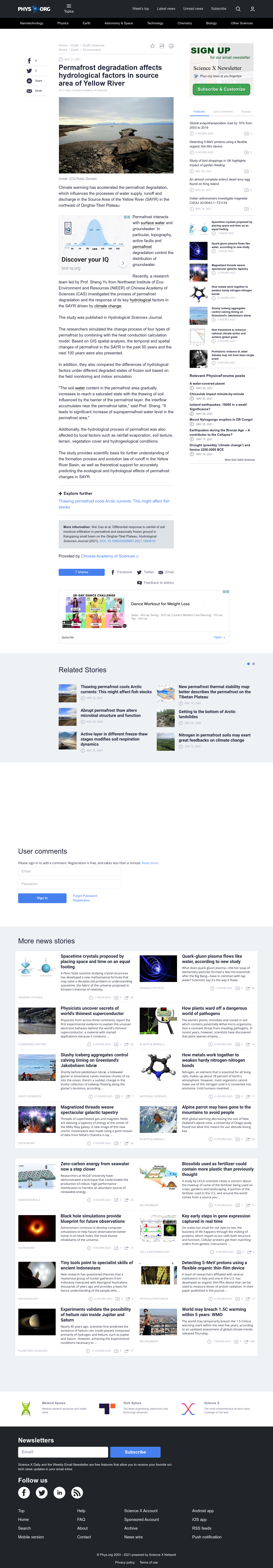 Climate warming has accelerated the permafrost degradation, which influences the processes of water supply, runoff and discharge in the Source Area of the Yellow River (SAYR) in the northeast of Qinghai-Tibet Plateau.