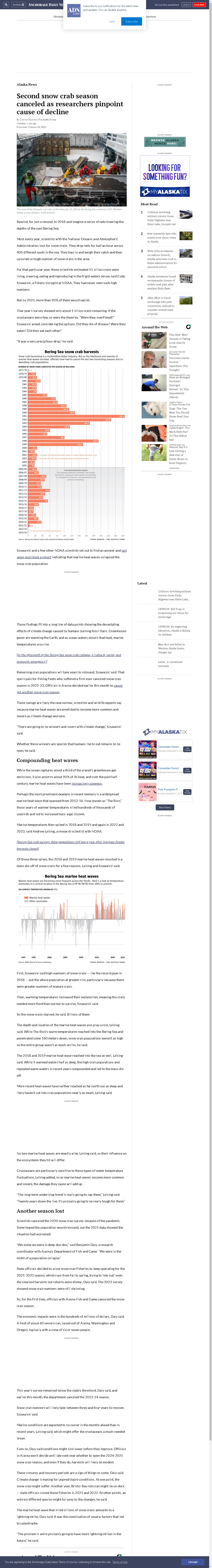 The second snow crab season has been canceled due to a decline in population caused by marine heat waves, which are becoming more common and severe due to climate change.
