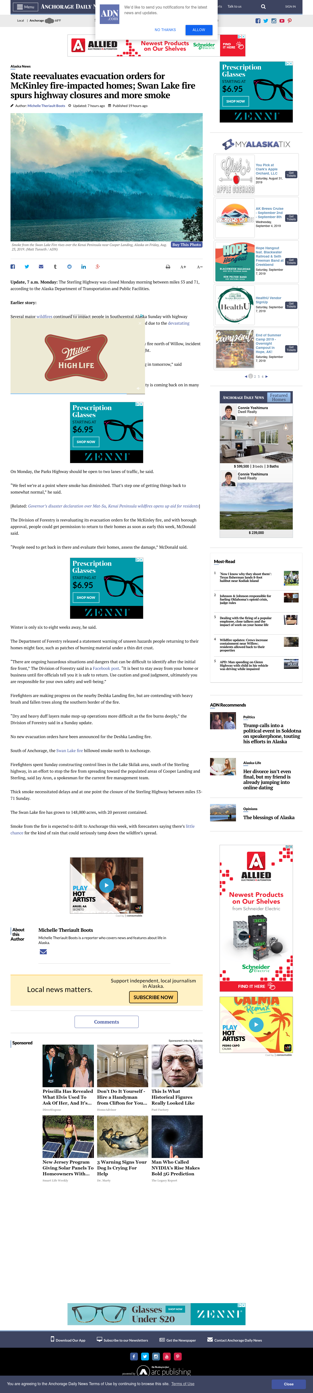 The McKinley fire, Deshka Landing fire and Swan Lake fire continued to impact Southcentral Alaska with highway closures and delays, smoke and questions about when residents evacuated from the McKinley fire would be able to return to their homes.