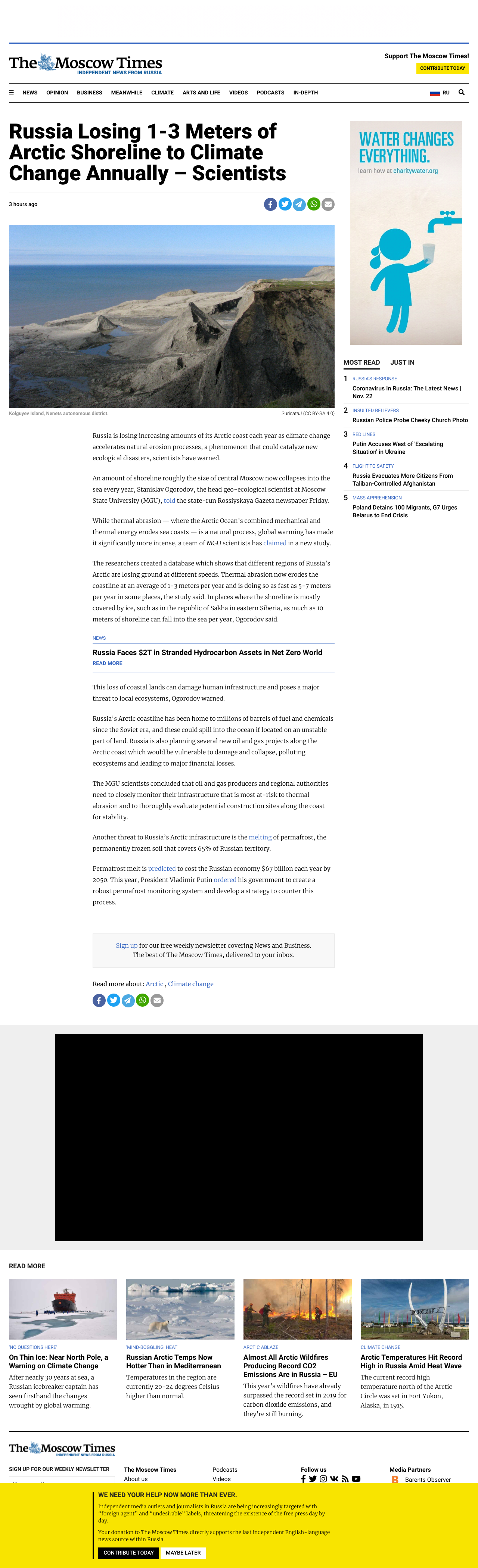 Russia Losing 1-3 Meters of Arctic Shoreline to Climate Change Annually