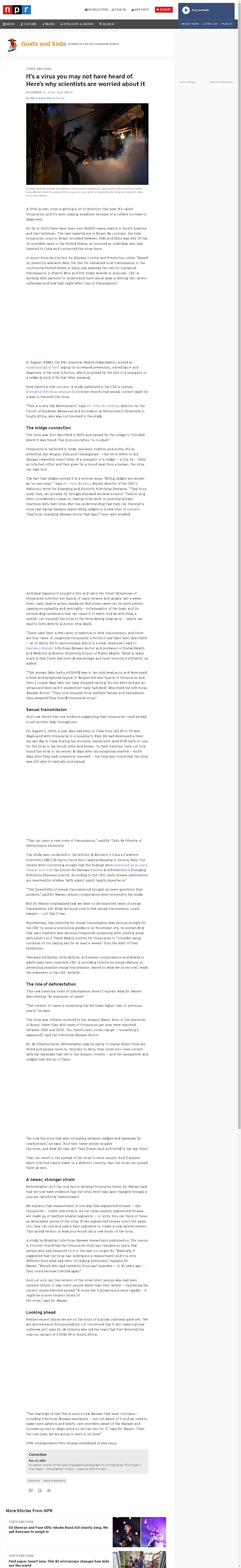 Case counts for Oropouche virus are still low but rising dramatically. What's going on? And then there's a study that raises the possibility that insect bites aren't the only way the virus can spread.