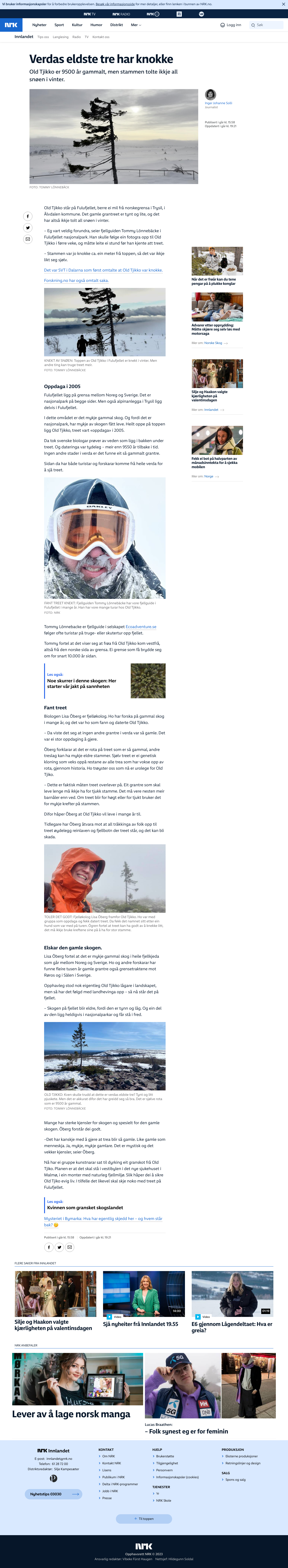 Old Tjikko stands on Fulufjellet, just a mile from the Norwegian border in Trysil