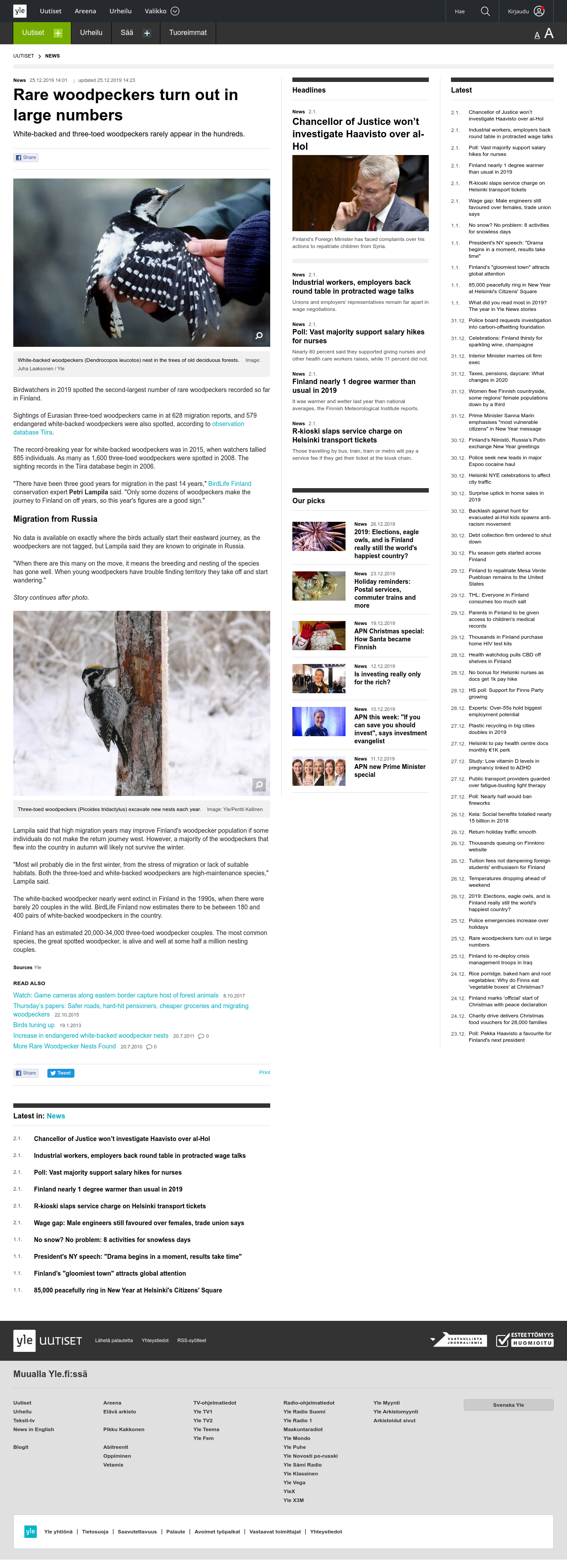 Birdwatchers in 2019 spotted the second-largest number of rare woodpeckers recorded so far in Finland. White-backed and three-toed woodpeckers rarely appear in the hundreds.
